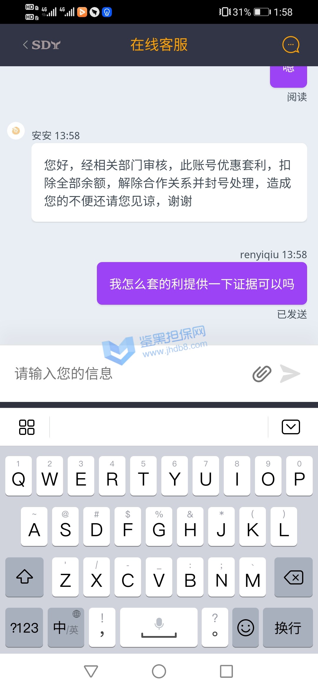 4.用户提交维权需为本人提交,若代替让人发布维权鉴黑担保网将拒绝受理;