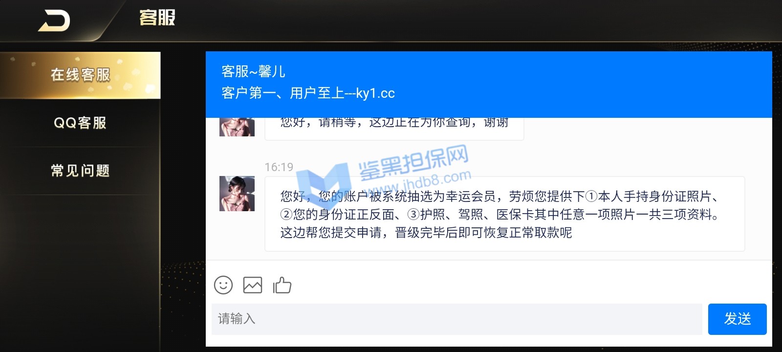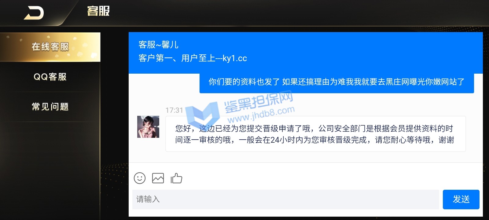 3.用户提交维权申请后资料不齐全,需在一周内补齐鉴黑担保网客服要求的资料,若超过一周时间没有完善维权信息,维权将因资料不全拒绝受理;